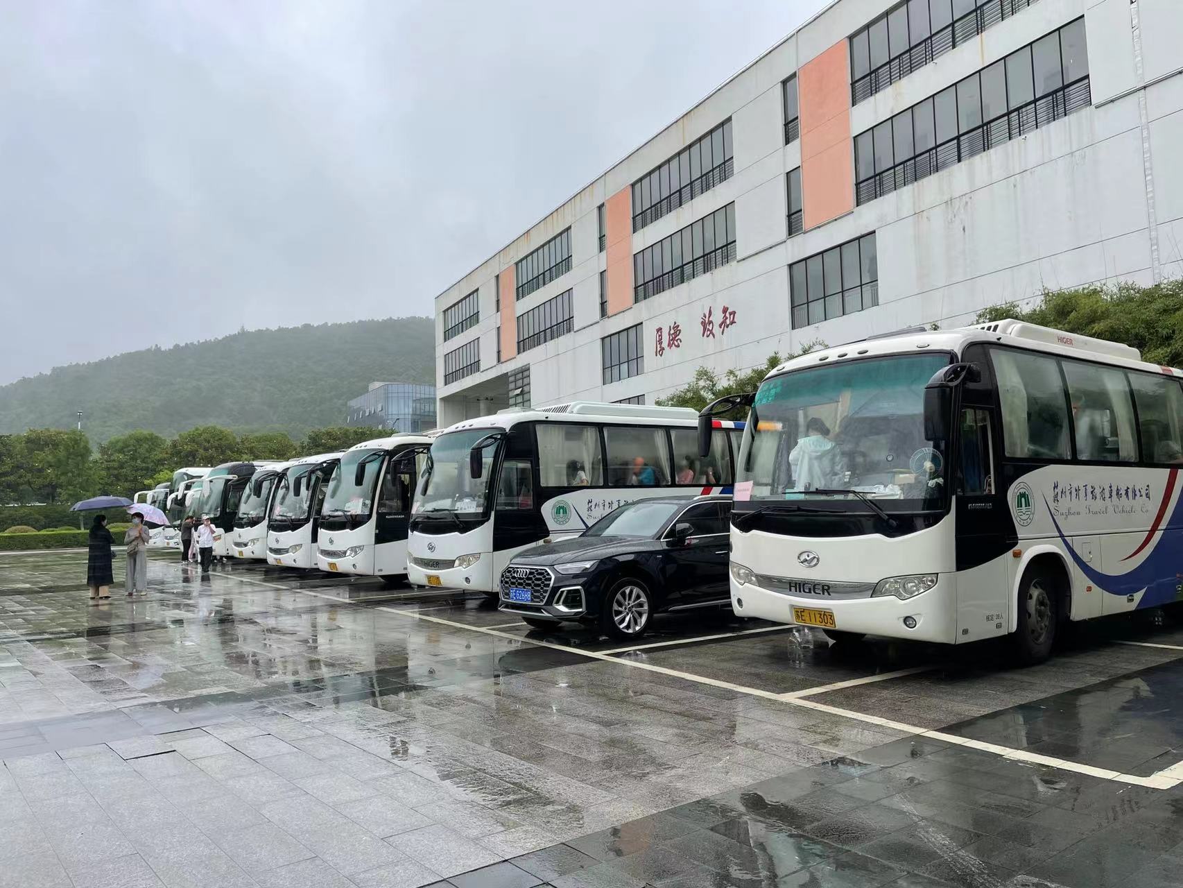 送点实习活动从6月12日清晨开始,十多辆大巴聚集在高博大门的广场上,下点实习的学生从各自的宿舍带着行李来到广场,涌向了标有实习点医院的大巴车,王凤英副校长冒雨指挥不断调整和调用车辆,章晓莉副院长现场了解实习生和行李上车的情况,在送点老师和实习组长的协助后下点大巴按时出发。