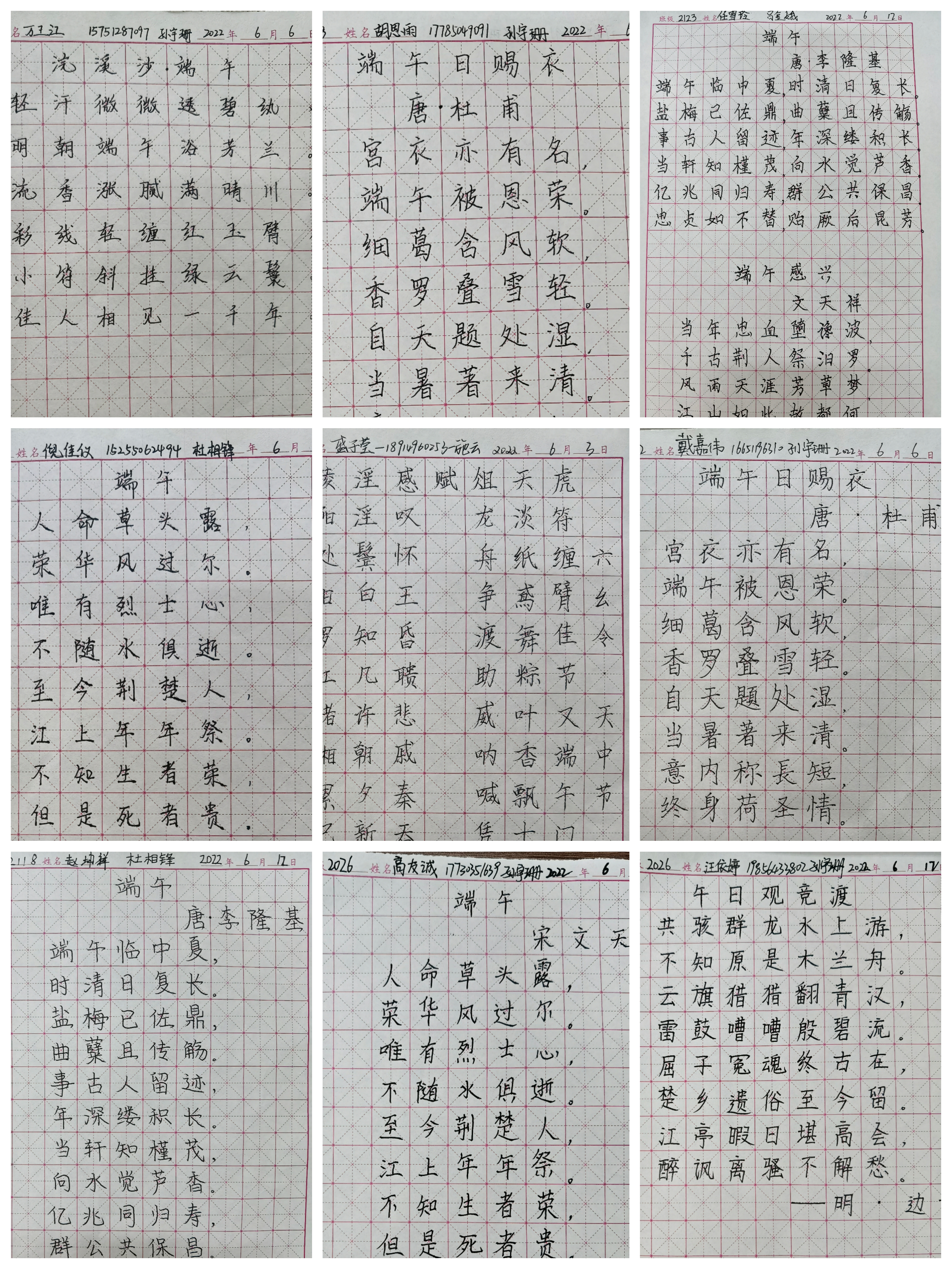 为弘扬中华民族优秀传统文化,增强爱国主义情怀,发挥民族传统节日思想熏陶和文化教育功能,将传统文化融入校园生活,引导广大青年学生礼敬传统节日、弘扬节日文化,培养学生良好的书写能力,提高文化素养。6月3日-6月11日,机电工程学院分团委开展了“书香溢端午,笔墨抒浓情”硬笔书法大赛,机电学院辅导员老师们组织在校学生报名参加,同学们对本次活动投入了极大的热情,踊跃上交书法作品。