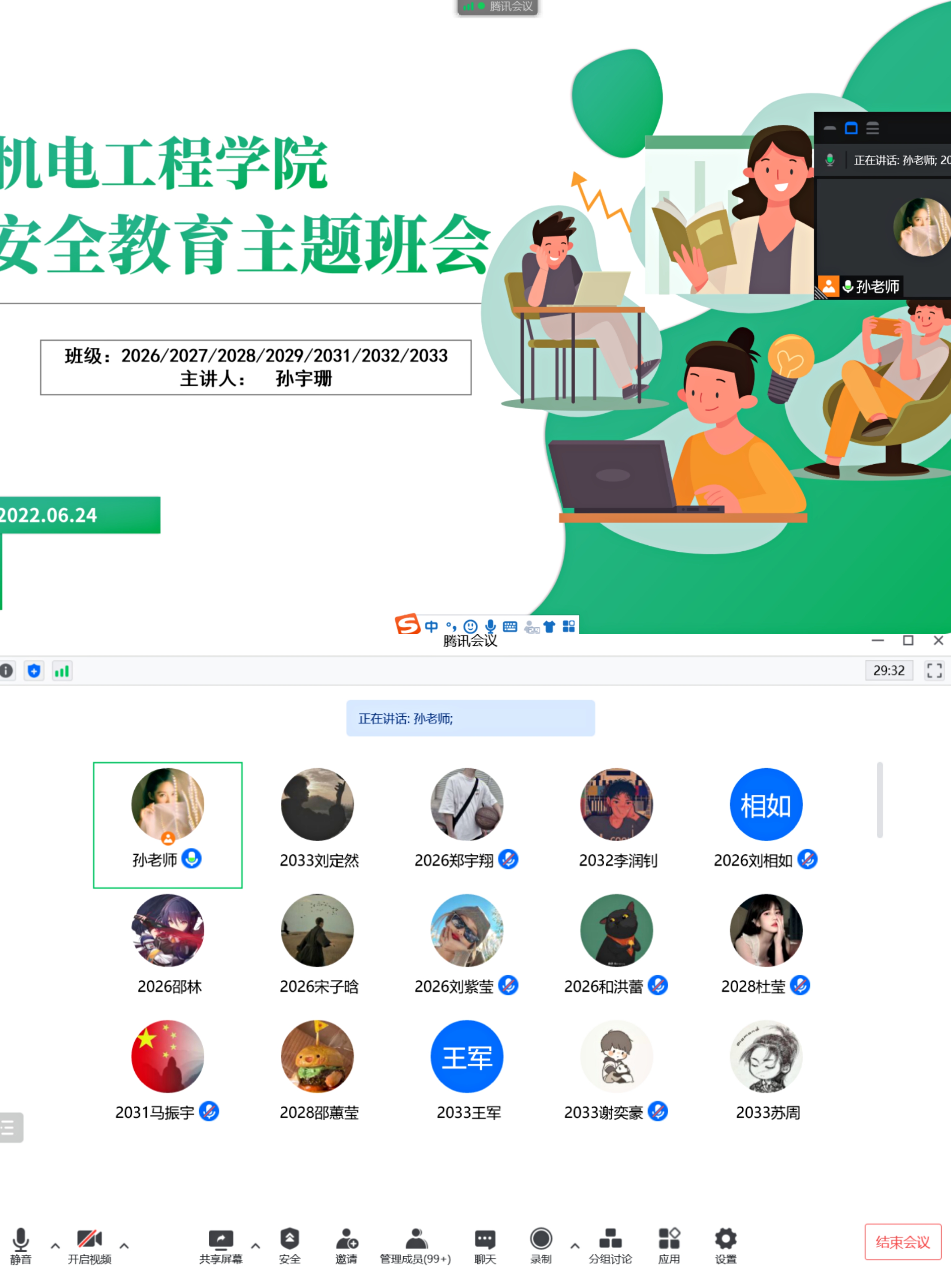 为扎实推进我院学生安全教育工作,强化学生安全防范意识,普及安全知识,引导学生有效防范各类安全事件、事故的发生,维护学生安全,确保安全稳定,严格的遵守校规校纪。2022年6月20日至7月1日,机电工程学院各年级本着遵守学校疫情防控的各项要求,分别以线上线下相结合的方式开展了安全教育主题班会。此次班会由各年级辅导员主持,主要围绕疫情防控、网络诈骗、借贷及宿舍违章用电问题等安全内容展开,共累计24场。