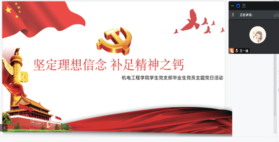 机电学院学生党支部于7月5日晚上18点半在线上开展了“坚定理想信念 补足精神之钙”主题党日活动。本次会议由学生党支部书记王一迪老师主持,机电工程学院党总支副书记陈粟裕老师和其他辅导员老师共同参加。