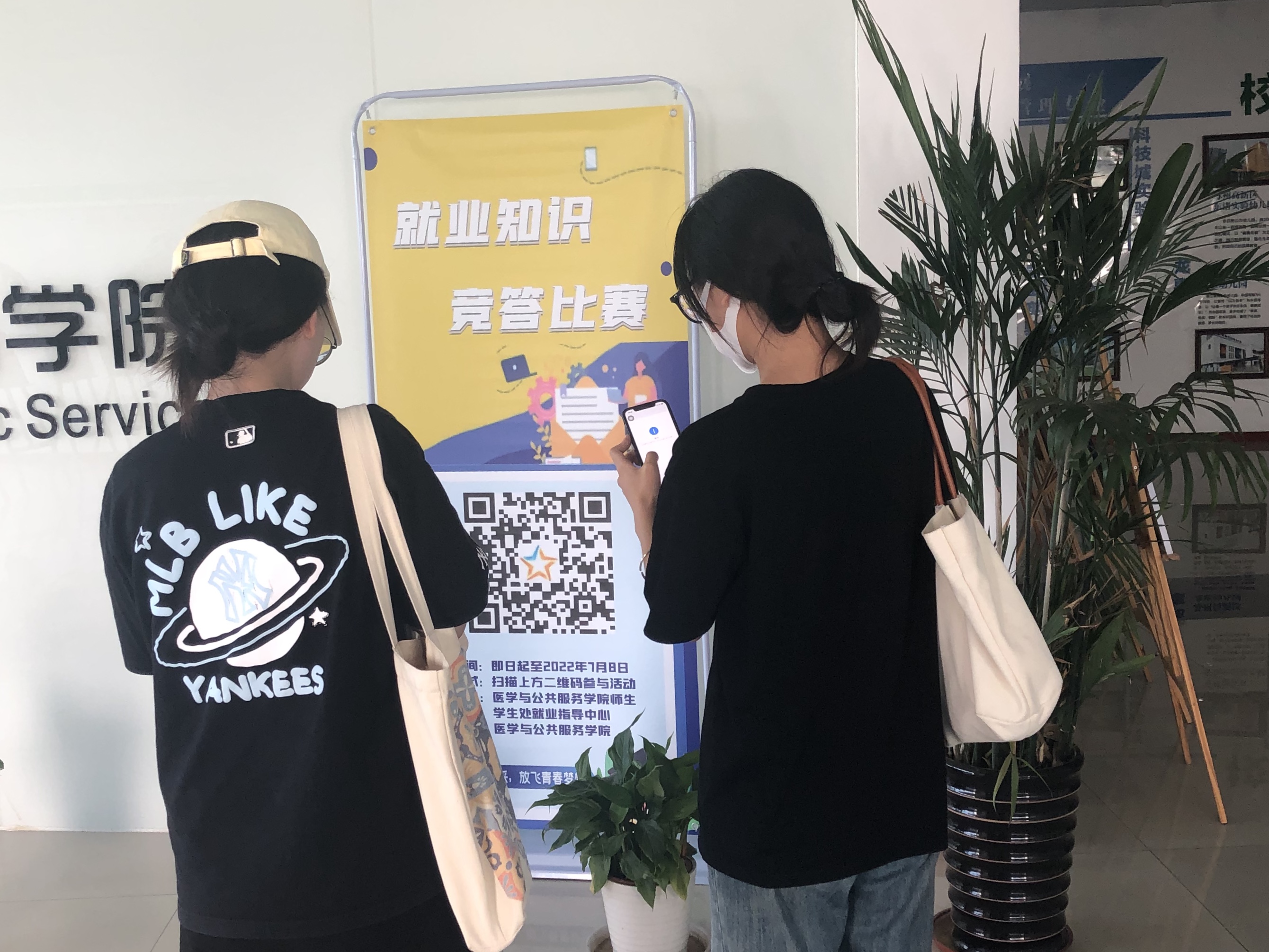 为了帮助学生更好地掌握求职技巧,增强学生的择业意识和就业主动性,医学与公共服务学院面向全院学生,2022年7月1日至7月8日开展了线上就业知识竞答活动,同学们通过扫描二维码积极参与作答。