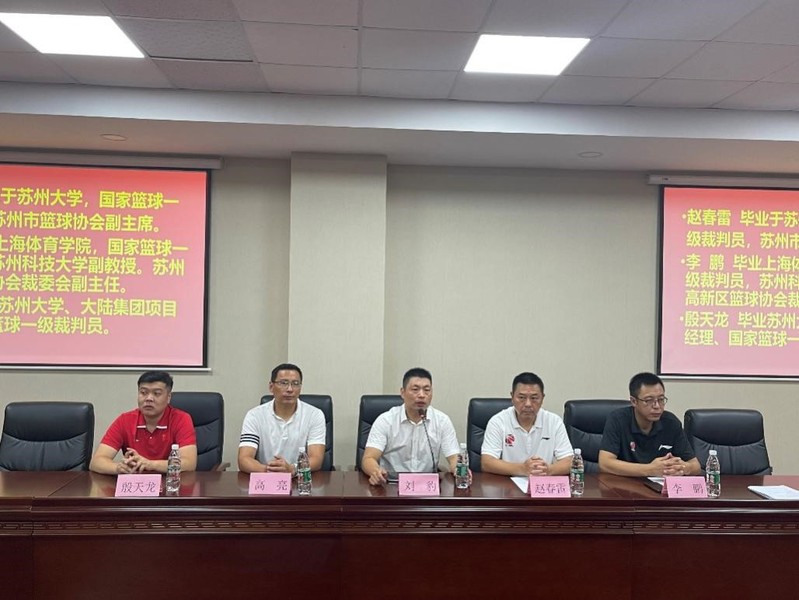 7月9日上午,由我校主办、我校人文社会科学学院承办、苏州市高新区篮球协会协办的第一期篮球三级裁判员暨篮球社会指导员培训班在我校行政楼215会议室正式拉开帷幕。苏州高新区篮球协会主席、苏州市超越人力资源有限公司董事长刘豹,苏州市篮球协会副主席赵春雷,我校人文社会科学学院公共基础教研部主任高亮,国家篮球一级裁判员、苏州高新区篮球协会裁委会副主任李鹏,国家篮球一级裁判员、大陆集团项目经理殷天龙等出席了培训班开幕式。
