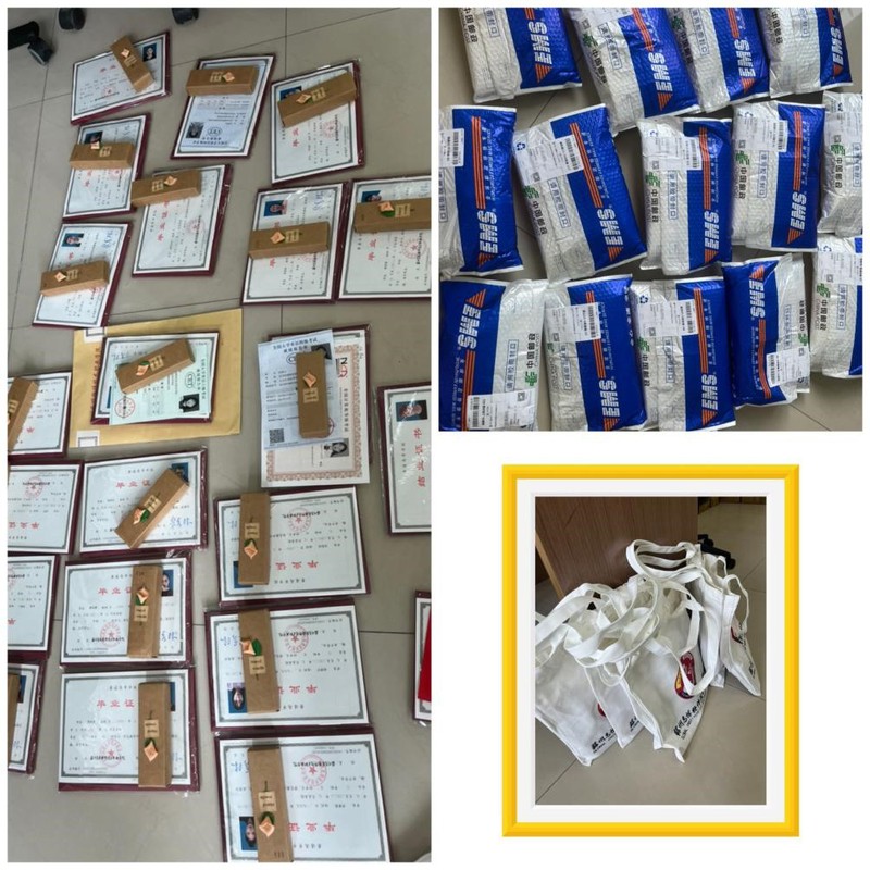 图4::毕业证、纪念品分装打包邮寄现场