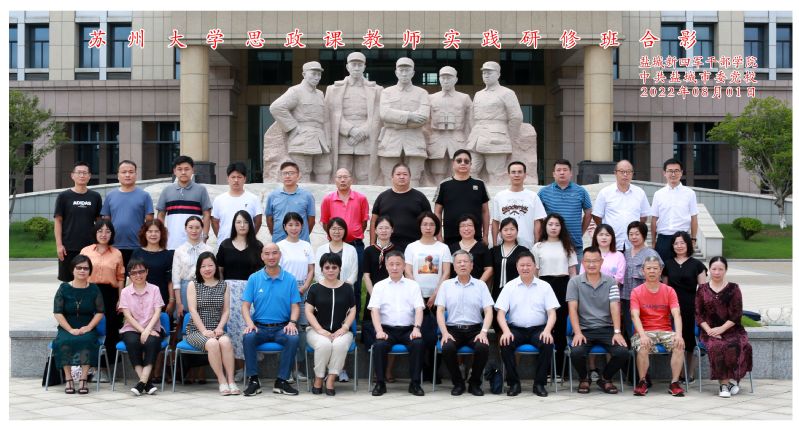 为深入学习贯彻习近平新时代中国特色社会主义思想和党的十九届六中全会精神,切实加强我校思想政治理论课教师队伍建设,不断提升思想政治理论课的思想性、理论性和亲和力、针对性,按照苏州大学马克思主义学院与我校共建马克思主义学院的总体计划,7月28日至8月1日,我校马克思主义学院(社科部)三位思政教师应邀与苏大马院的部分思政教师及相关专家等赴中共盐城市委党校(新四军干部学院)开展暑期实践研修活动。