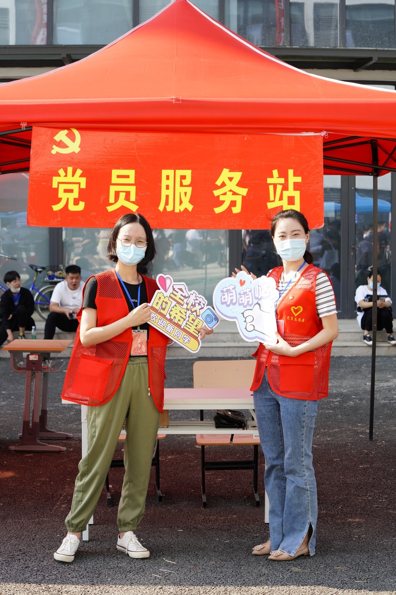 党员志愿者王昊涵老师表示,作为共产党员,能够参与到本次迎新活动中,一种责任感油然而生。虽然牺牲了假日陪家人、陪孩子的时间,但能为初入校园的学子们提供更多便利,感觉这是我们的使命,也是共产党人应有的奉献!党员志愿者盛松梅老师表示,事无大小,站在一线岗位帮学生和家长解决问题和困惑,也是在提升自己服务群众的能力和水平。