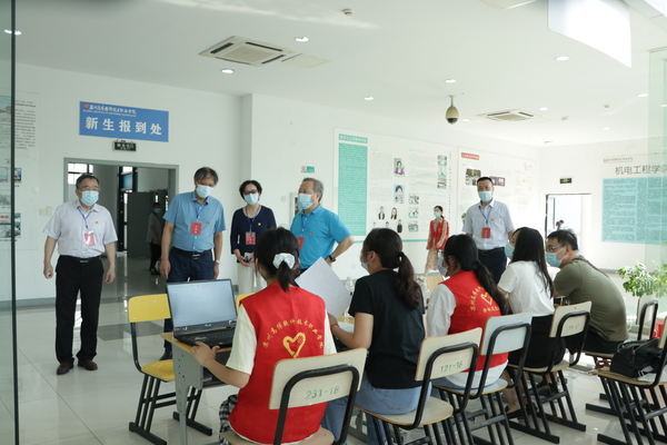 在新生报到前,校领导来到迎新点,带队检查迎新工作布置情况,对报到现场、后勤保障、志愿服务等工作进行了详细了解和细致检查。9月12日新生报到当天,校党委书记薛辉,党委副书记、副校长徐子良,副校长陈家颐,副校长邹学海,副校长王凤英等校领导和相关职能部门负责人一早便走访了迎新现场,看望和慰问迎新工作的教师和志愿者,并与新生和家长进行了亲切交流。相关职能部门和各二级学院领导、师生也深入迎新第一线,强化服务与担当,协同联动,热情迎接2022级新同学。