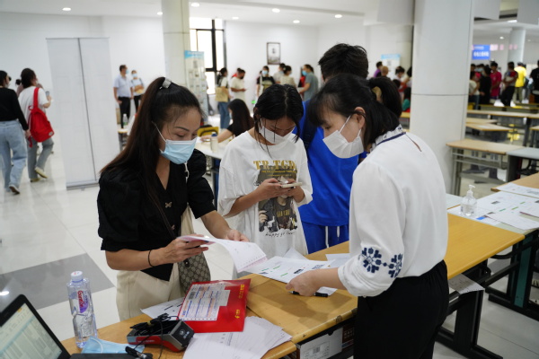 学校以学生为中心,优化报到服务流程,信息网络中心实时开展新生报到数据采集;设立“绿色通道”,为新生提供学费缓交手续办理、国家助学贷款咨询、生源地助学贷款手续办理等一站式服务;校园内设立报到引导标志、报到流程图、饮水区和行李集中存放区。
