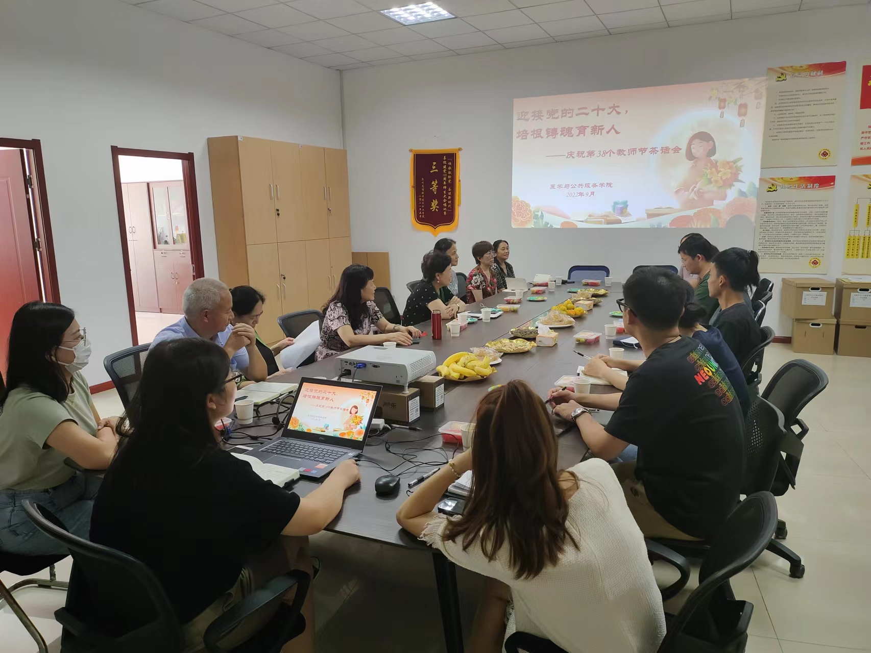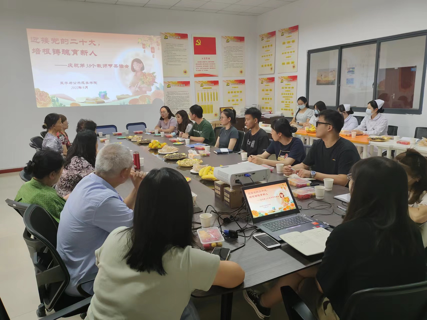 今年中秋佳节恰逢第38个教师节,9月9日下午,医学与公共服务学院组织了庆祝双节茶话会,学院党政领导、各系部主任、学工负责人,新入职的9位教师共同参加了活动。
