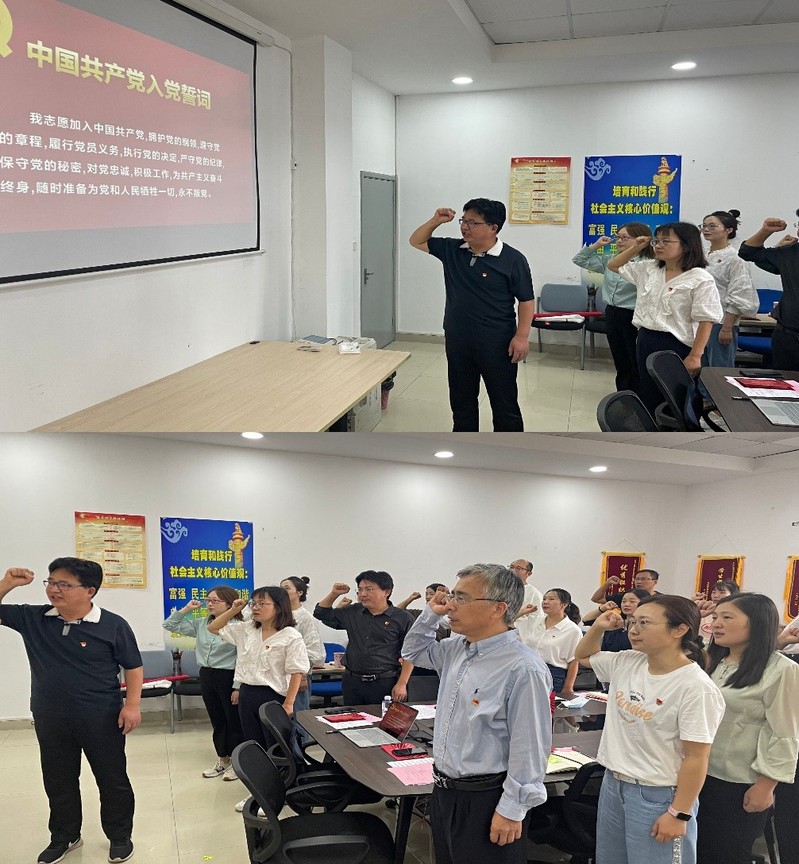 在领誓人吴建明的带领下,全体党员面对党旗,庄严地举起右拳,重温入党誓词,目光坚定,神情肃穆,铿锵有力的宣誓声回荡在耳畔,也激荡着每一名党员的心。全体党员通过重温入党誓词,叩问初心,守护初心,坚守使命,担当使命,始终做到初心如磐、使命在肩。吴建明书记和黄兴院长分别为过“政治生日”的党员赠送贺卡。举行“政治生日”仪式旨在强化党员的身份意识、宗旨意识和责任意识。