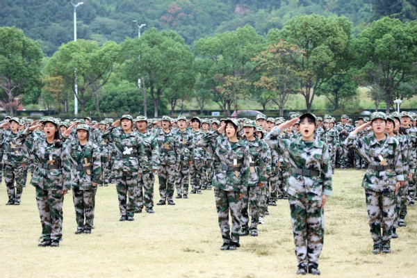 军训成果汇报表演在庄严的国歌声中拉开帷幕,在武装部部长、军训团团长程志明的陪同下,党委书记薛辉同志依次检阅各连方阵,同学们嘹亮的口号声响彻训练场。