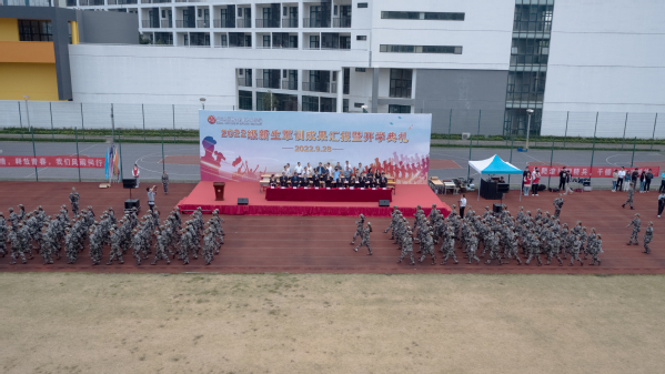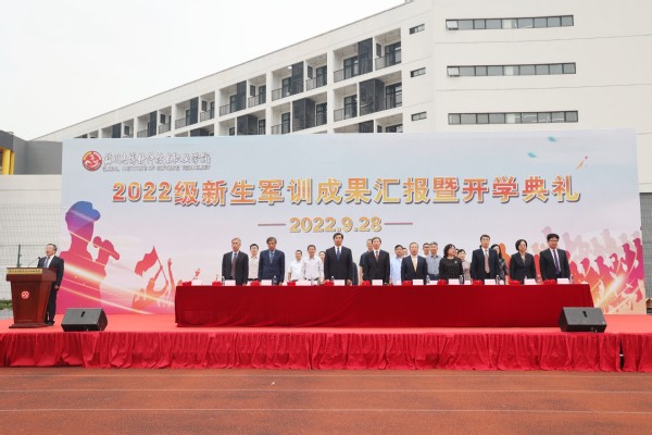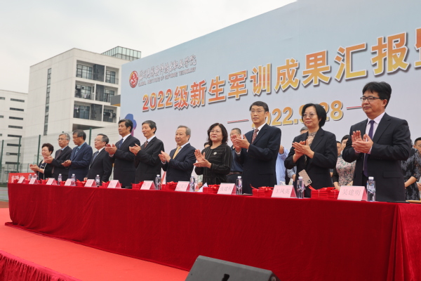 各二级学院院长,党总支(直属支部)书记、副书记,学工办主任及相关职能部门负责人,新生辅导员,教师代表以及全体承训教官和2022级新生参加活动。军训成果汇报由党委副书记、副校长徐子良主持。