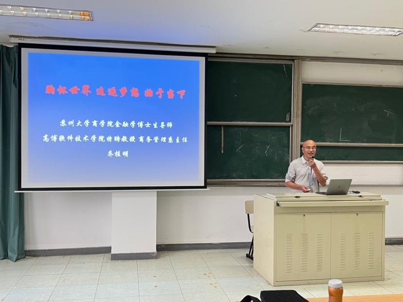 活动伊始,商务管理系系主任乔桂明教授以“胸怀世界、追逐梦想、始于当下”为主题进行了讲座,希望新生能怀抱感恩之心,珍惜今天的学习生活,树立成才之心,迎合世界经济的发展潮流和趋势,增加自己的竞争意识,积极做好生活方式、学习方法的转变,立足当下,知行合一,为自己的理想制定学习和发展目标,在大学生活中学会自主学习,实现自身目标与价值。