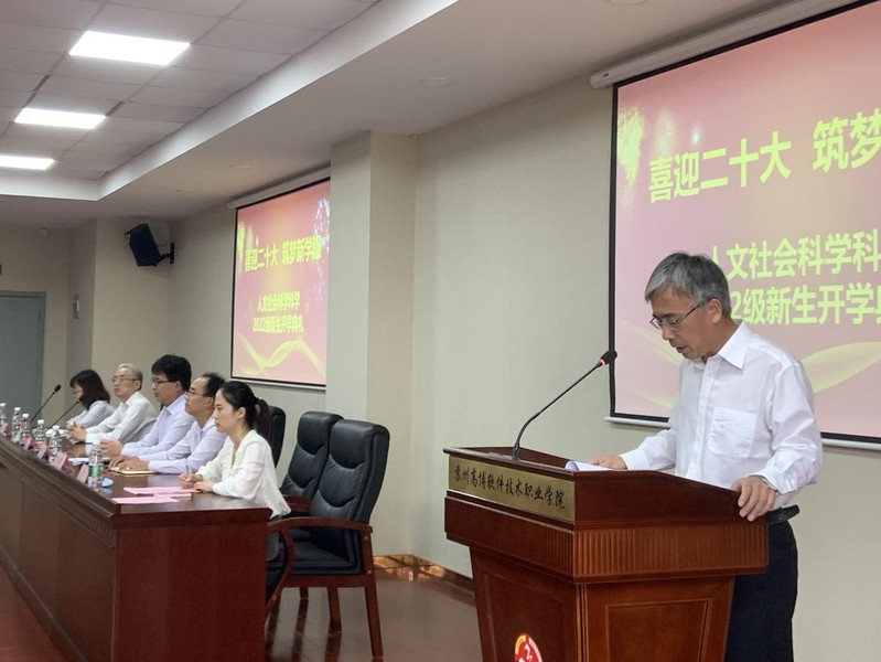 金秋九月,丹桂飘香。9月30日上午,人文社会科学学院在行政楼215会议室隆重举行2022级新生开学典礼。校长助理、学院院长黄兴,校长助理、学院直属党支部书记吴建明,副院长吴歧范,院长助理卢春林、特聘教授洪庆福,应用英语专业负责人张凤,休闲体育专业负责人张赞,院办公室主任侯宇晨,新生辅导员吴敬德以及2022级全体新生出席了开学典礼。开学典礼由院学工办主任赵雪飞主持。