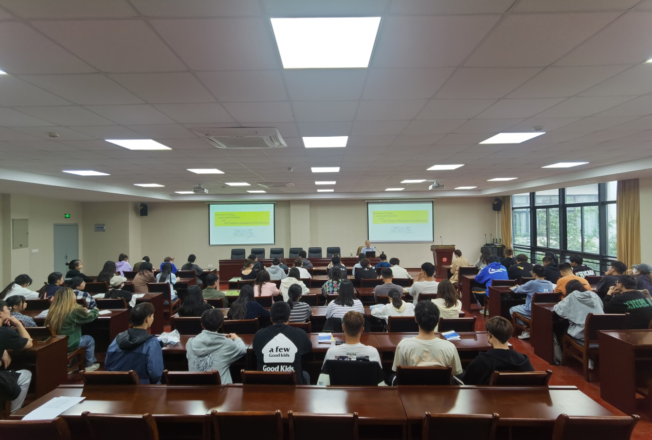 为了让2022级新生更好地适应大学生活,培养创新思维,明确学业规划,养成良好学习习惯和科学思维方式,人文社会科学学院于10月7日下午邀请高博特聘教授洪庆福为新生做了一场题为“新生的力量:一个超越专业的诉求”的导学讲座,院学工办主任赵雪飞、新生辅导员吴敬德及2022级全体大一新生参加讲座。