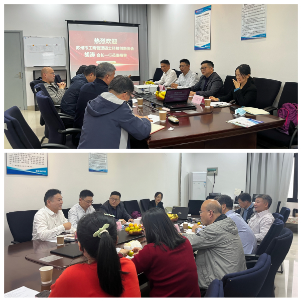 苏州市工商管理硕士科技创新协会胡涛会长肯定了我校的办学成果,并详细介绍了协会主要情况及协会为推动其会员企业高质量发展做出的举措与服务。副会长杨中蔚强调,产业的变化对专业的影响是广泛的,从企业的角度,需要不断改革创新,改变思维模式,与学校的需求达成一致。山东大学苏州研究院院长助理何永文对高职院校学生的综合素质给予了肯定,他表示企业导师进课堂、学生进企业,对学生职业生涯规划有着重要意义。随后双方就兼职教师的聘请、扩大校企合作规模、帮助年轻教师下企业锻炼、筹建产业学院等方面进行了深入交流与讨论,并达成了初步意向。