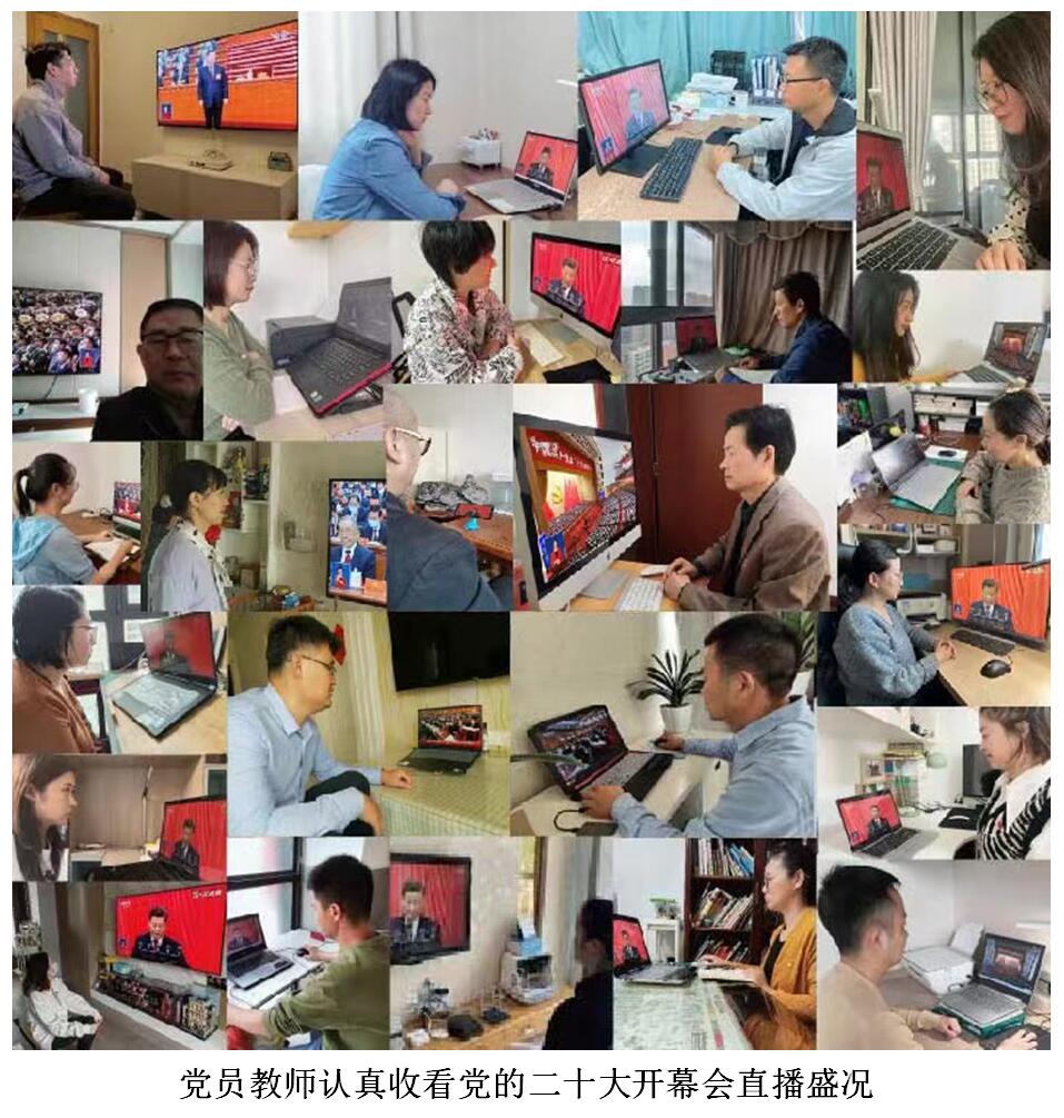 党员教师认真聆听了习近平总书记代表第十九届中央委员会向党的二十大作报告,报告站位高远、思想深邃、主题鲜明、内涵丰富,精辟总结了过去五年工作和新时代十年伟大变革,深刻阐释了新时代坚持和发展中国特色社会主义的重大理论和实践问题,科学谋划了未来五年乃至更长时期党和国家事业发展的目标任务和大政方针,具有极强的政治性、战略性、指导性和实践性,是引领全党全军全国各族人民在新时代新征程上全面建设社会主义现代化国家、全面推进中华民族伟大复兴的行动纲领和奋斗指南。党员教师切身感受到了团结、和谐、奋进的会场气氛,感受到了十年以来新时代中国特色社会主义伟大成就,倍感鼓舞人心、催人奋进。我们要以党的二十大报告精神为指引,更加紧密地团结在以习近平同志为核心的党中央周围,全面贯彻习近平新时代中国特色社会主义思想,深刻领悟“两个确立”的决定性意义,增强“四个意识”、坚定“四个自信”、做到“两个维护”,踔厉奋发、勇毅前行。