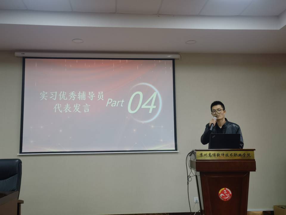 苏州聚力电机有限公司陈彦铭总经理发表了讲话,肯定了我院学生在工学结合期间的优异表现并对其给予期望,呼吁同学们珍惜校园时光,将工作岗位上学到的知识与技能运用到课堂中,积极与同学们分享经验。
