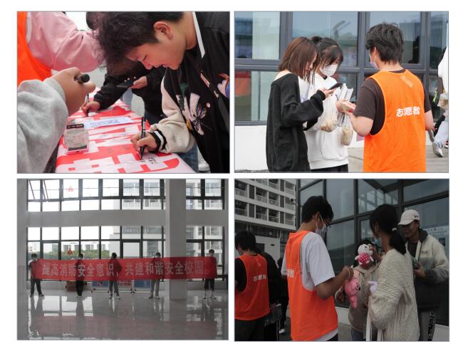 学校保卫处还在新校区宿舍醒目位置摆放了消防宣传海报,消防志愿者向同学们分发消防安全知识的宣传单,通过消防答题二维码普及消防安全知识。保卫处还为参与活动的同学们准备了丰富的奖品。