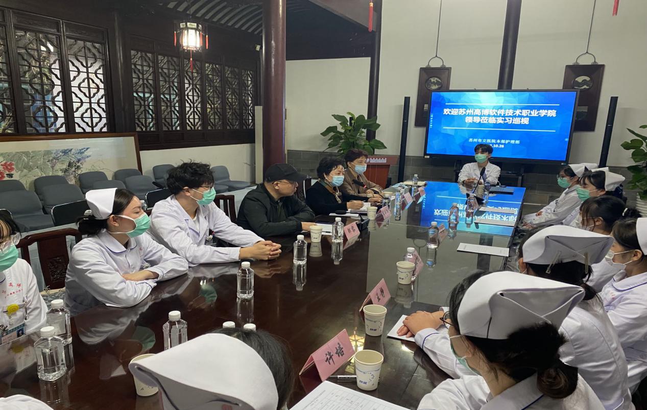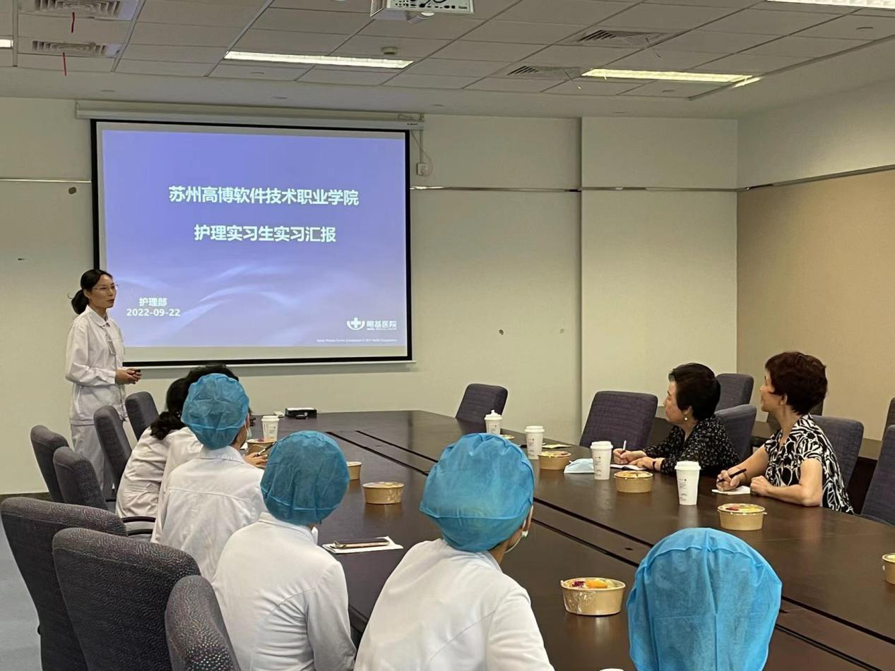这次我们走访了苏州大市范围内每个实习医院,分别与带教老师和实习学生进行了座谈交流,并组织学生进行了现场平台考试。每到一处,医院和护理部的领导都相当重视,亲自接待,热情的交流和沟通。在与带教老师座谈时,薛小玲院长首先对各家实习医院对我院实习工作的鼎力支持和帮助表示衷心的感谢,对带教师的的辛勤付出表示崇高的敬意,并简要介绍了学校及我院的发展情况、师资力量和招生规模等。恳请老师们严格要求我们高博实习生,打造具有高博精神的医学天使—合格的护士。带教老师也都一一谈了我们学生的实习表现,所获得的成绩和存在的问题。总体反应本届实习学生无论是理论基础还是技能操作等方面都较前有所提高,且同学们在医院实习期间,均能遵守医院各项规章制度,服从医院安排,尊重老师,虚心好学,做事低调踏实,在老师的带教下认真完成实习计划的各项要求; 能严格落实三查七对,规范进行各项基础操作及专科操作,尽量做到护理工作规范化。现场平台考试也取得了可喜成绩。