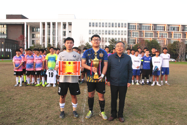 11月24日下午,当决赛结束的哨声响起,经过20余天的激烈角逐,学校第十二届足球联赛顺利落下帷幕。艺术与建筑学院代表队凭借出色的发挥与默契的团队配合获得冠军,人文社会科学学院代表队和机电工程学院代表队分别获得亚军和季军,国际商学院代表队获得体育道德风尚奖,学校党委副书记、副校长徐子良教授,学生处处长邹艳星副教授以及各二级学院党总支副书记、学工办主任分别为各获奖队伍和个人颁发了奖状及奖杯,并合影留念。