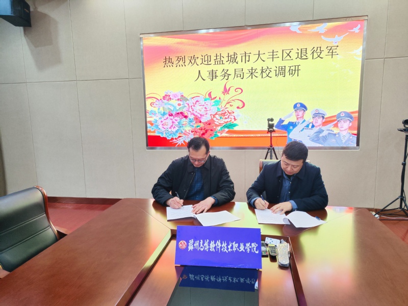 12月13日,盐城市大丰区退役军人事务局潘副局长一行5人来我校调研,洽谈退役军人培训合作工作,继续教育学院常务副院长夏亦晗,发展办公室主任马浩等参加了签约仪式。