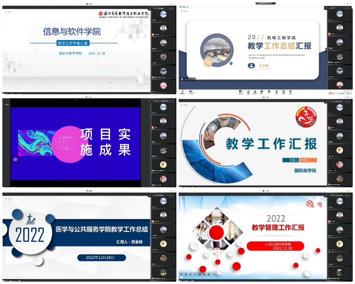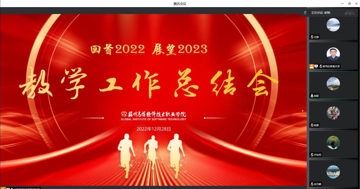 首先,教务处陆霞处长从专业建设、课程建设、团队建设、实践教学、创新创业和常规教学等六个方面总结汇报了2022年学校教学工作,简要介绍了学期结束和假期培训工作安排。