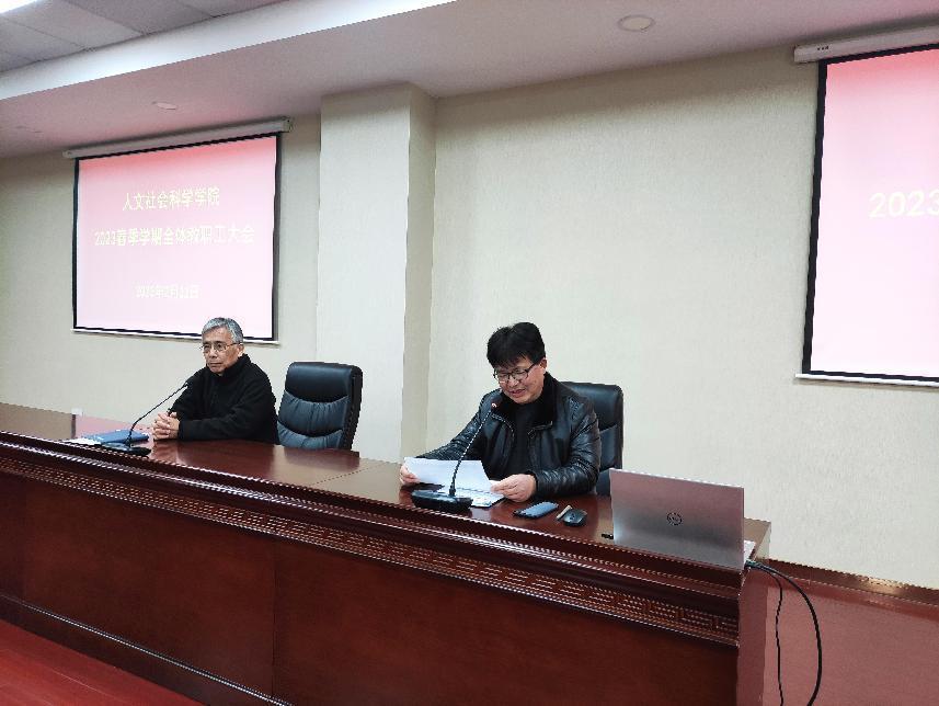 新春伊始,万象更新。为及时传达学校2023年新学期干部大会精神,统筹部署2023年学院春季学期各项工作,2月22日下午,人文社会科学学院在行政楼215会议室召开2023年春季学期教职工大会,院党政领导班子成员、特聘教授及全体教职工出席了会议。会议由校长助理兼人文学院党总支书记吴建明主持。