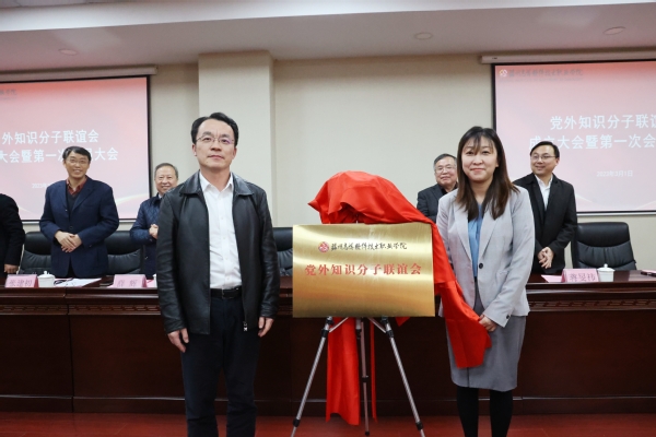 在全场热烈的掌声中,市人民政府教育督导室副主任沙涛和市委统战部无党派人士和党外知识分子工作处处长黄聪瑜共同为学校党外知识分子联谊会揭牌。