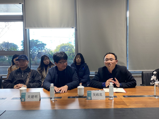 参观结束后,双方进行了深入地沟通交流。医疗器械产业集团党政办副主任王健伟再一次对我院教师一行表示热烈欢迎,并介绍了产业园党建工作的具体情况和创新做法。医疗器械产业园企业第一联合支部书记迟文烁在会上提到,校企合作是高职学校培养高素质技能人才的重要模式,产业园未来将积极配合我校师生工作,如积极为我校人文学院学生提供实习机会,推荐科学家走进高博思政课堂,双方联合开展党建课题研究等等。马克思主义学院院长吴歧范发言中指出,理论结合实践是马克思主义理论的内在品格,是我们党的优良传统。思政教师走向社会进行调研、宣讲,是深入理解党的创新理论的根本途径,是开展学术研究与创新的源头活水,是年轻思政教师提高业务能力的根本需要。
