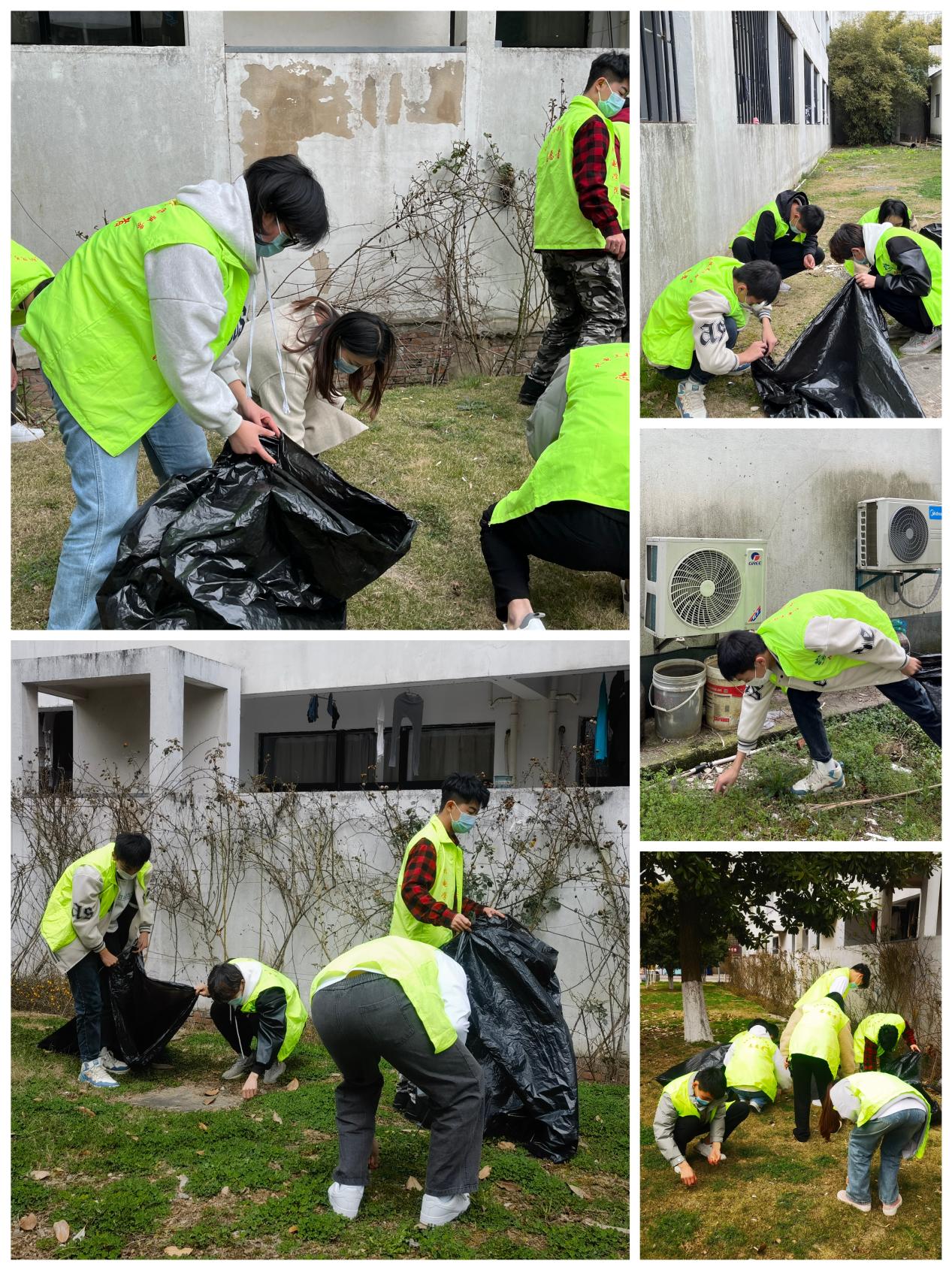 在活动过程中,每位志愿者分工明确,认真履行各自的职责,将区域内的饮料瓶、快递包装、烟头等各类垃圾进行清理,为同学们营造出和谐、健康、积极向上的生活学习环境。