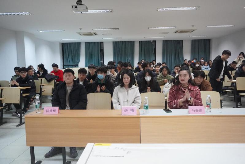 其次,赵楠老师的发言,不仅是对第一学期各部门辛苦付出的鼓励,也对各部门取得的优异成绩给予了肯定。赵老师在新学期倡导学生会成员在未来更加坚定无私奉献精神,继续发扬为同学服务的信念,在新学期,应当加强各部门配合,更加出色地去完成日后的工作。