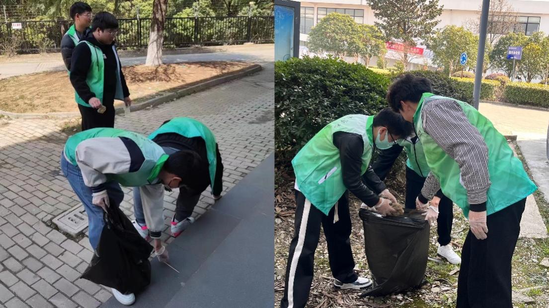 伴随着宜人的春风,又吹来了雷锋三月,为进一步弘扬雷锋精神,教育引导学生崇尚劳动、尊重劳动,牢固树立劳动最光荣的观念。3月7日12点半,国际商学院分团委的志愿者们在姚瑶老师的带领下,组织开展了青年学生“弯腰一秒钟,环境更美丽”的志愿服务活动。