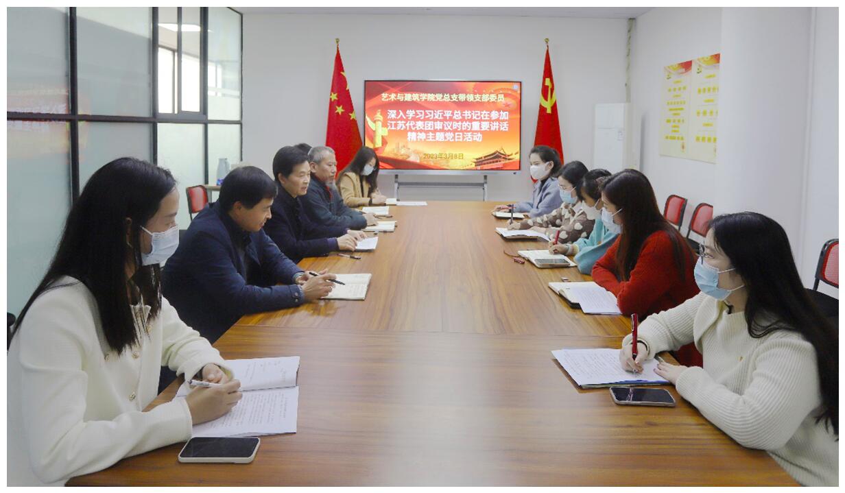 为深入传达学习习近平总书记在参加十四届全国人大一次会议江苏代表团审议时的重要讲话精神。在学校党委的统一部署下,3月8日,艺术与建筑学院党总支召开学习习近平总书记在参加江苏代表团审议时的重要讲话精神的主题党日活动。党总支书记、副院长施建平,党总支副书记纪冰心,党总支委员、副院长张斌,教工党支部书记吴兵,教工党支部副书记孙雅君,教工党支部委员张金威、许雅婷、付玲,学生党支部书记李一帆,学生党支部委员韩露、何婷婷参加会议,会议由施建平主持。