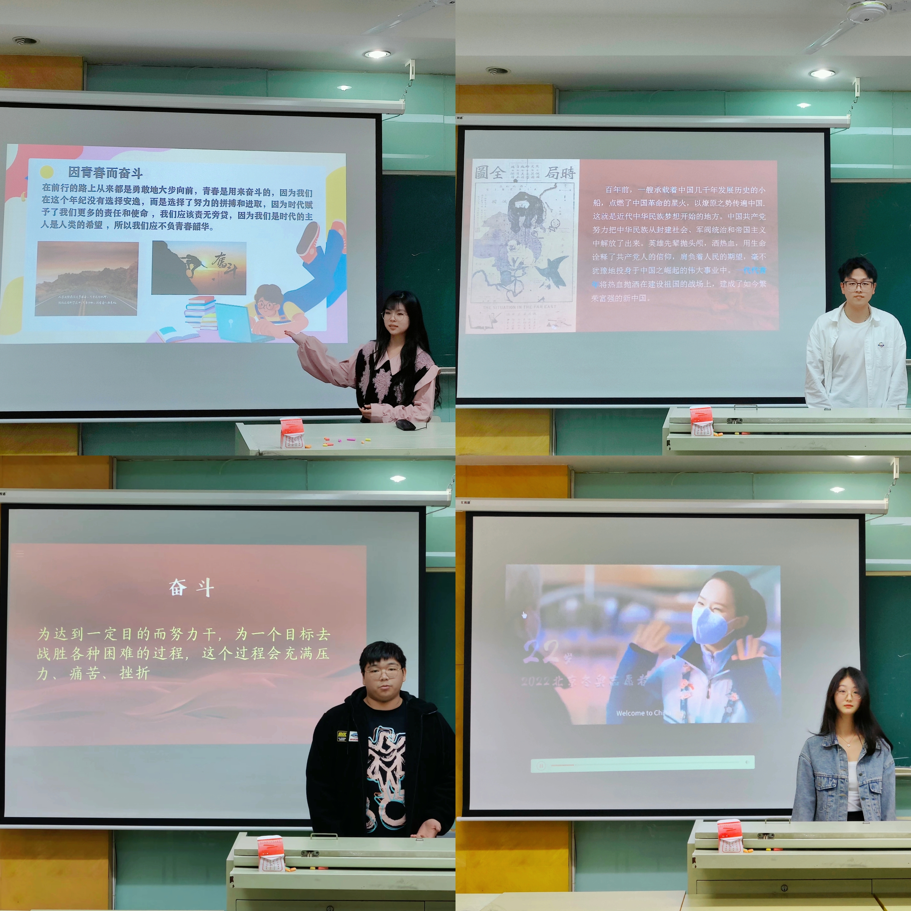 活动开始,四位参赛成员先抽取出场顺序,随后按序走上讲台展示风采。参赛选手以最佳的精神面貌,最动人心弦的言语为我们呈现了一场语言和思想的盛宴,为我们呈现了何为青春之意义。奋斗是一种姿态,一种精神,更是一种人生境界。