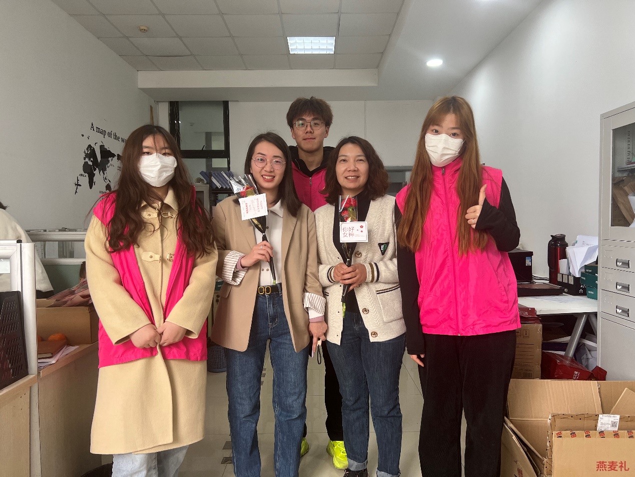 从选购到包装,人文社会科学学院团总支学生会为我院女教职员工送上亲手包装的50份花束。