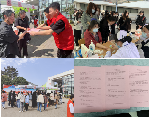 活动当天,医学院分团委邀请了护理专业有护士资格证的同学们前来义诊,活动现场气氛火热,吸引了大批在校师生前来参与。志愿者们分发科普宣传单,为我校师生热心宣传“甲流防疫”、“健康膳食”和“高血压病”相关知识。