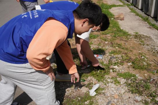 活动正式开始,参加活动的志愿者们便三五成群、迫不及待地展开工作。有的在捡拾同学们丢弃的垃圾、有的撑垃圾袋、有的拖垃圾桶、有的清除杂草,为全校师生营造一个良好的学习生活环境。