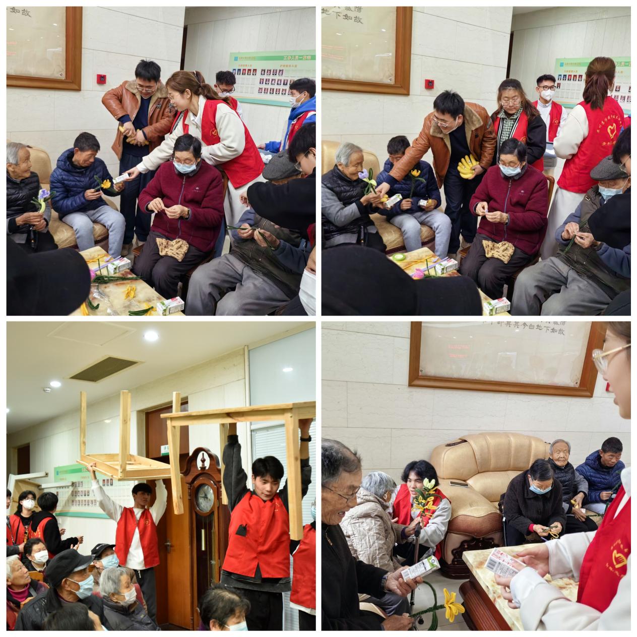 此外,志愿者还与老人们共同制作了“郁金香花束”手工作品,他们细致又耐心地教导,赢得了老人们的一致好评,看着老人们脸上的笑容志愿者们也倍感开心。从陌生到熟悉,老人们对此次的志愿服务活动纷纷表示感谢,期待与志愿者们再次见面。