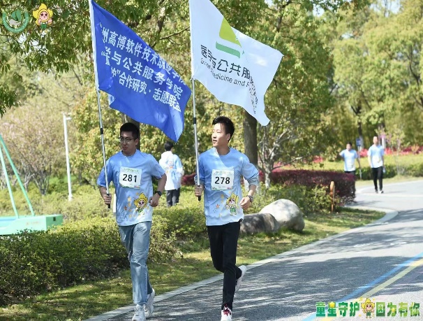 随着一声枪响,“徒步·骑行”活动开始。我院青年教师和学生志愿者身穿统一服装,集结成骑行和徒步两个方阵,手持“童星守护,因为有你”小旗帜,沿途为孤独症人群发声,用实际行动支持此次活动,2.5公里的“徒步·骑行”活动中,我院青年志愿者个个精神抖擞,活力满满。