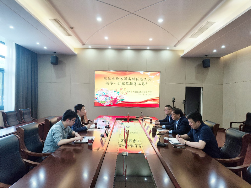 2023年04月19日,苏州高新区总工会副主席张政一行来访。学校副校长邹学海、继续教育学院常务副院长夏亦晗、副院长张红参与接待,并陪同参观了学校的实训基地。