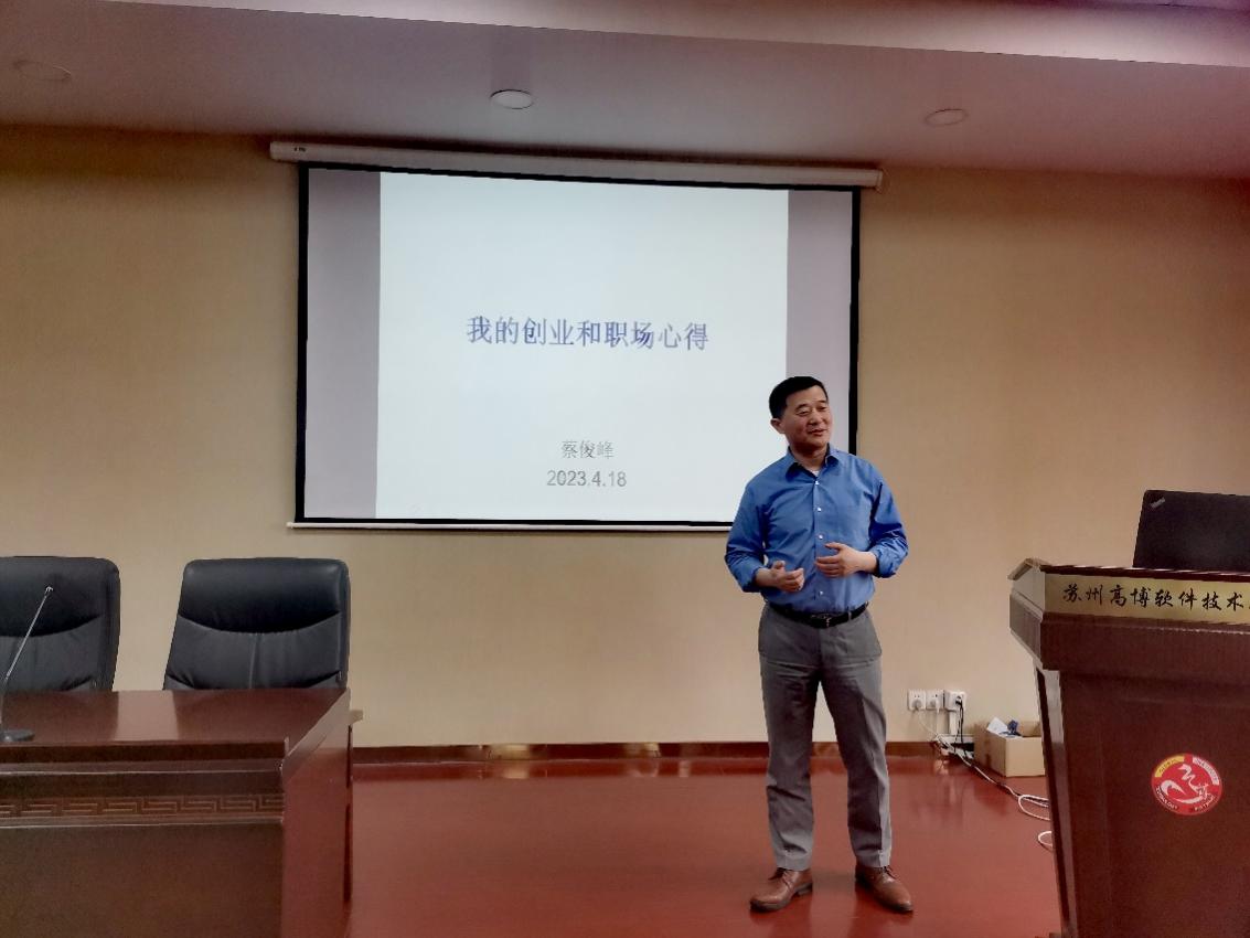 为了让学生了解当今社会及企业对人才的需求状况,帮助学生树立正确的择业观,激励学生刻苦学习,并提前做好个人职业生涯规划,人文社会科学学院于4月18日组织举办了“企业导师与学生面对面”活动,邀请我校企业导师、众华电子科技(太仓)有限公司董事长蔡俊峰为学生做专题辅导报告。