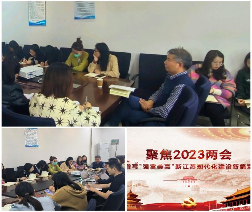 在全面贯彻党的二十大精神开局之年,为深入贯彻“两会”精神,进一步使全体党员提高思想认识、增强政治自觉,2023年4月26日在行政楼217办公室,国际商学院党总支副书记张志豪同志以“聚焦2023两会,谱写‘强富美高’新江苏现代化建设新篇章”为主题讲授专题党课,学院领导班子、党总支全体教职工党员与会学习。