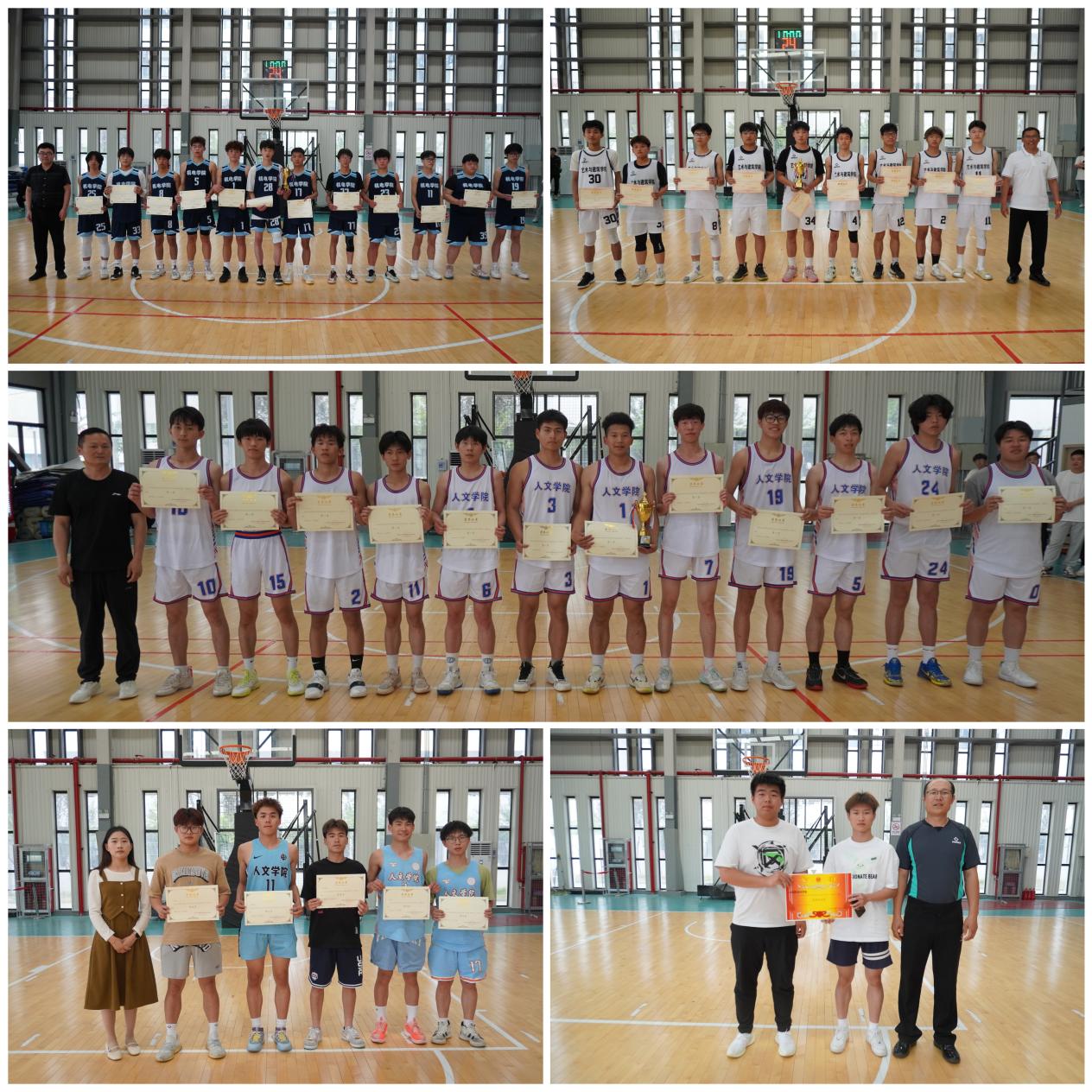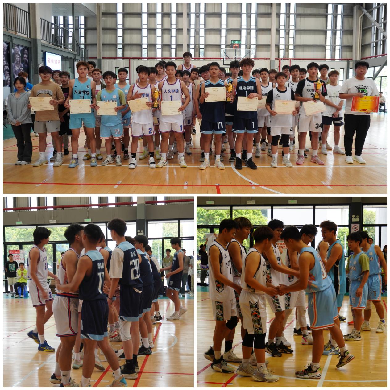在比赛过程中,裁判员秉公执法,严肃认真,尽自己最大的努力判决好每一个球,保障了比赛的公正性、连续性和观赏性;志愿者们恪尽职守,用自己的实际行动践行志愿者精神。参赛球队势均力敌,你追我赶,战至最后一刻方才分出胜负。最终22级人文社会科学学院斩获本届篮球赛的“冠军”,22级机电工程学院获得“亚军”,22级艺术与建筑学院获得“季军”。