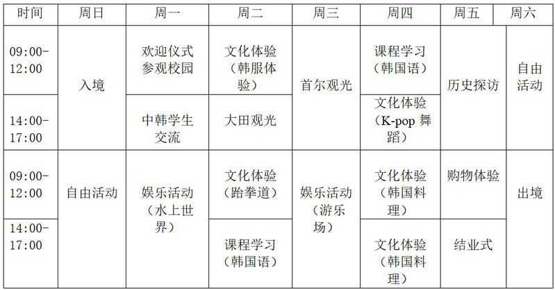 3.实地考察:大田市银杏洞、圣心堂等,首尔市景福宫、仁寺洞等,全州市韩屋村,扶余文化遗址等;