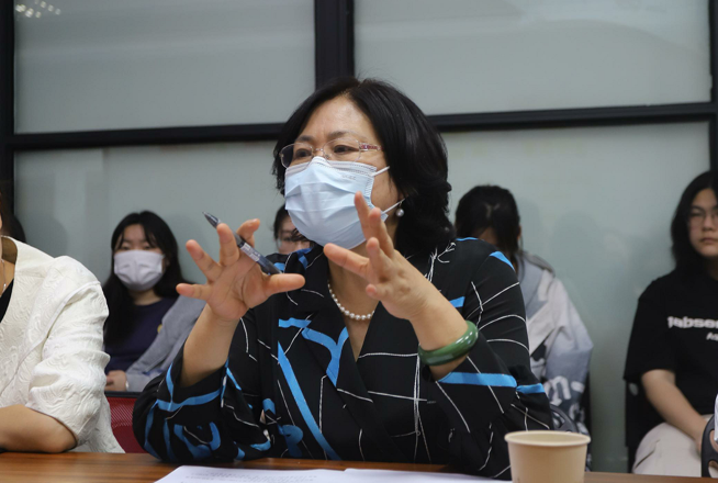 杨晓征教授就参赛短片的创作主题、团队组建、短片创作思路等做了汇报。杨教授表示,在时间紧迫的情况下,本次参赛打破了传统动画短片创作流程,原创动画短片创作给导师和学生团队带来了很大挑战。随后,夏明翾同学汇报了短片制作进度情况,介绍了短片中的分镜、人物造型和场景设计,呈现了已完成的部分动画,并对后期项目任务时间安排和团队分工进行了说明。