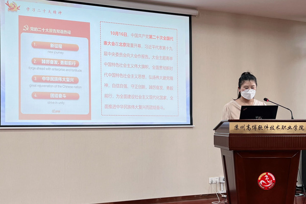活动开始,王昊涵同志以“学习党的二十大精神,争做时代新青年”为题分享了党的二十大精神学习体会,她从党的二十大会议召开的背景、会议精神、争做时代新青年三个部分展开分享,内容丰富、学习典型选择有代表性,她的分享展示了她个人在党的理论学习方面的阶段性成果,也为支部党员学习提高提供了素材。