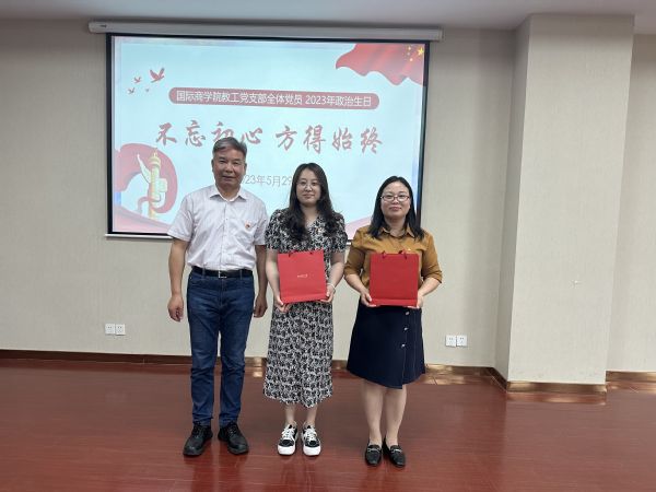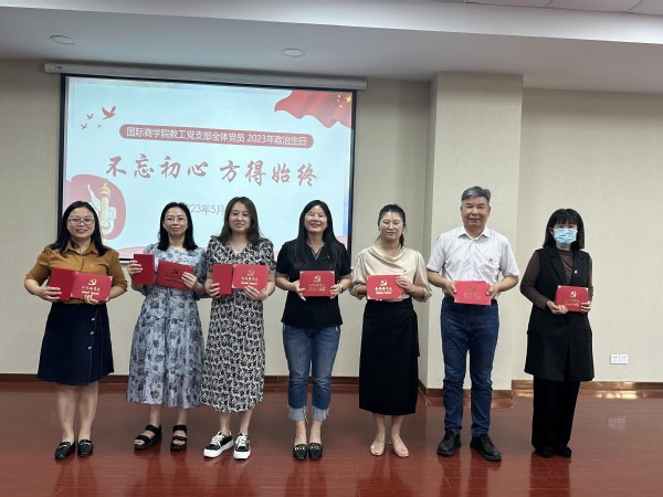 为增强国际商学院教工党支部的凝聚力和党员对支部的归属感,2023年5月29日中午,国际商学院教工党支部开展了以“不忘初心、方得始终”为主题的党员政治生日活动。活动分为以下五个部分: