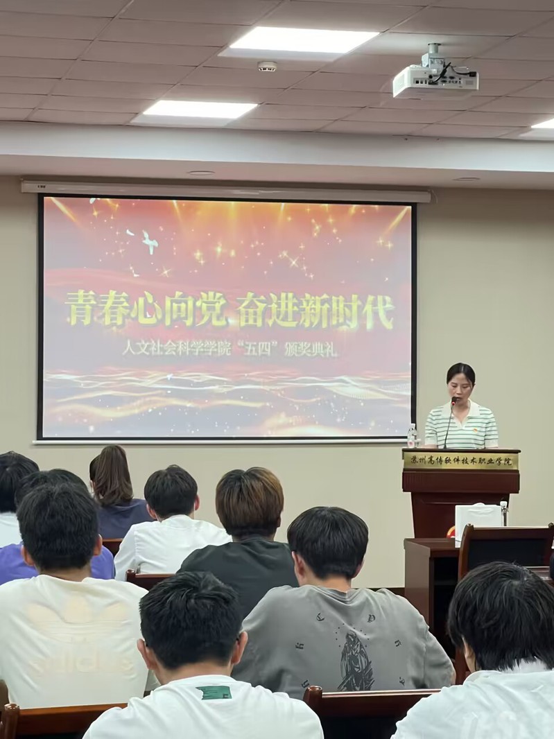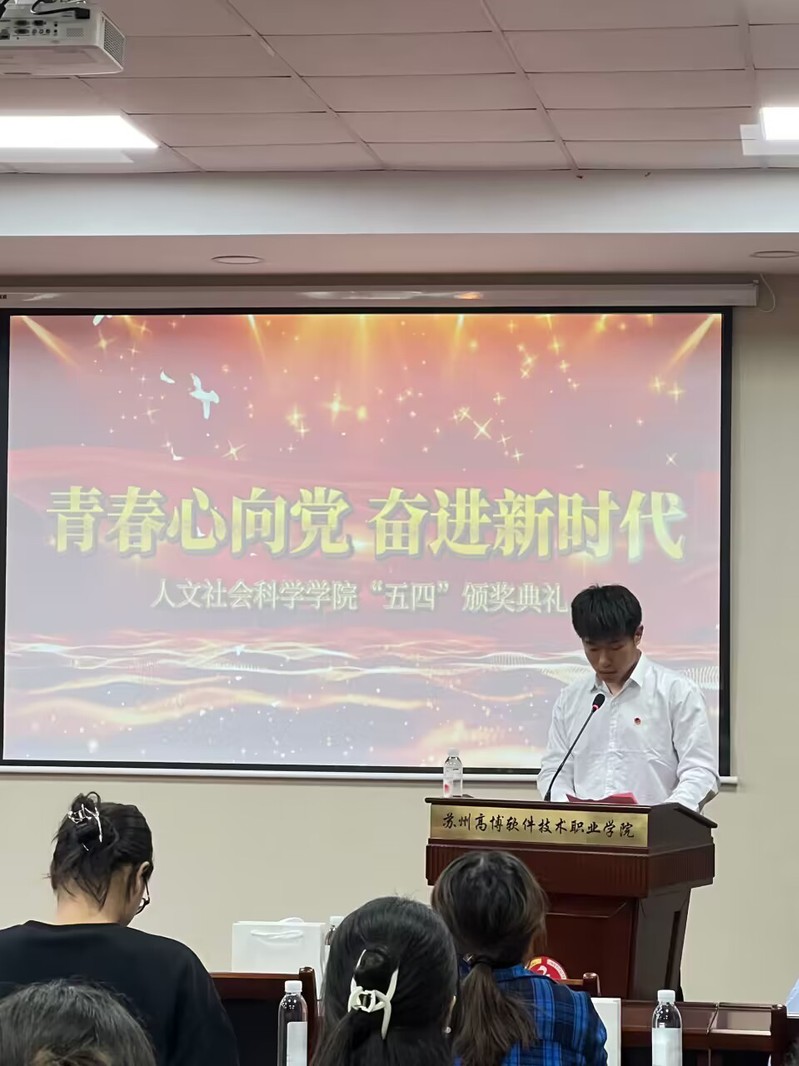 5月25日,苏州高博软件技术职业学院人文社会科学学院2022—2023学年“青春心向党,奋进新时代”五四颁奖典礼在行政楼215会议室隆重举行。校团委副书记孙宇珊、人文社会科学学院学工办主任赵雪飞、各学院分团委书记和指导老师出席典礼,校学生会主席团成员及各学院学生会执行主席参加了此次活动。