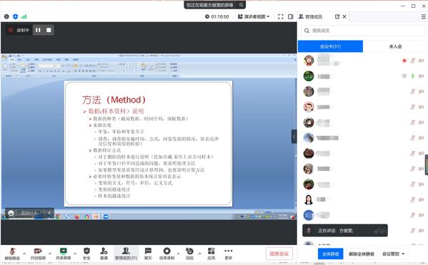 这次讲座方教授以“计量经济学论文写作方法——基于实证研究的视角”为主题,通过计量经济学如何选题、写作程序、资料准备、写作规范、计量方法的选择等多方面的分析,评述学术论文写作中常见的问题,指出论文撰写应有的核心要素,并提出若干建议。接着,方教授通过评析一篇核心期刊的实证论文,来进一步强化计量经济学论文的写作规范,如何选择计量方法以及方法的运用等关键要素,给老师们夯实了实证思维的理论和实践知识。最后,方教授针对老师之前提交的学习报告提出了许多实用与中肯的修改建议。