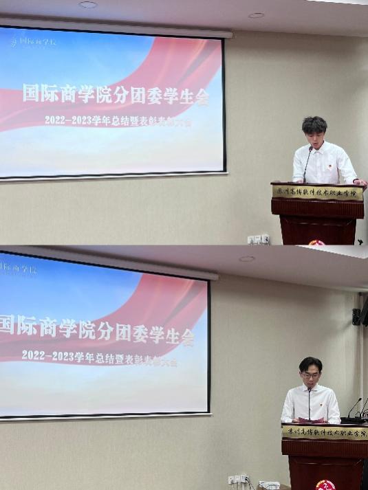 为表彰国际商学院2022-2023学年在分团委学生工作中涌现出来的优秀青年学生们,进一步动员广大团员青年投身于社会主义现代化建设中,推动我院青年学生工作向前发展,6月2日中午12:40,国际商学院分团委在12-215会议室顺利召开了2022-2023学年总结表彰大会。国际商学院团委负责老师姚瑶,辅导员李松晏、王若楠和魏元庆老师和全体学生会及青年学习社成员参加了会议。会议由储嘉俊同学主持。